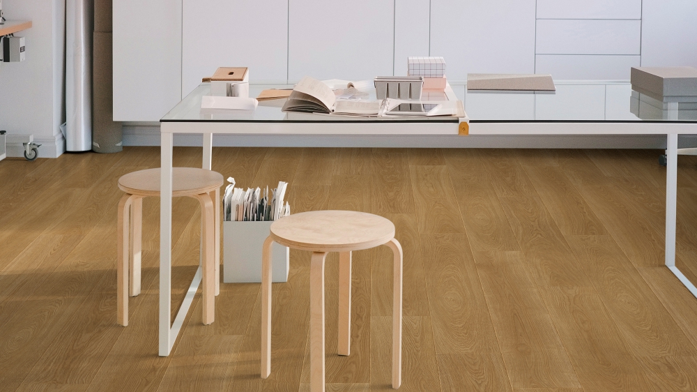 | Wysoka klasa ścieralności zależnie od formatu Klasa AC5 lub AC4 (w zależności od formatu) ułatwia dobór podłogi do projektów mieszkalnych i bardziej obciążonych stref użytkowych. |